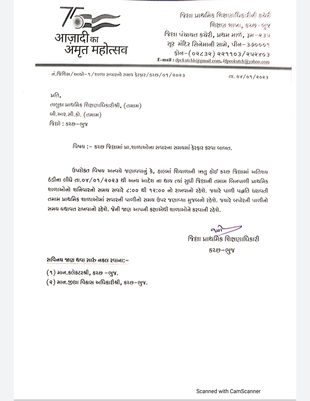 શાળા સમયમાં ફેરફાર બાબત આજનો તા 4/1/23નો પરિપત્ર જોવા નીચે ફોટા પર ક્લિક કરો
